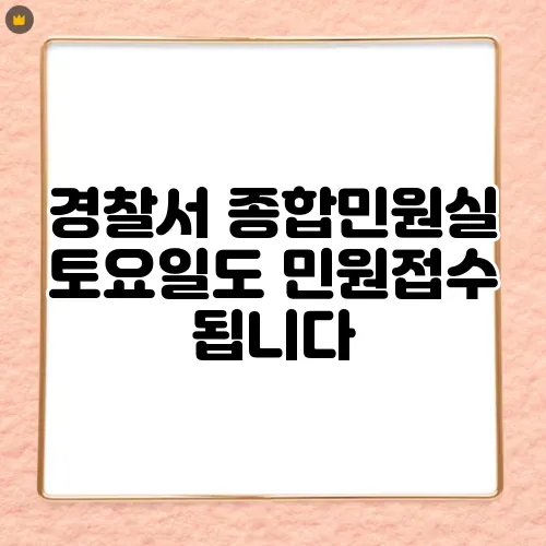 안녕하세요, 여러분. 오늘은 많은 분들이 궁금해하시는 내용에 대해 이야기해 보려고 합니다. 바로 경찰서 민원접수에 관한 것입니다. 특히 토요일에도 민원접수가 가능하다는 점은 많은 분들께 유용한 정보가 될 것입니다. 자주 바쁜 일상 속에서 시간을 내기 어려운 분들에게는 큰 도움이 되겠죠. 그래서 이번 포스팅에서는 종합민원실의 운영 시간과 제공하는 민원 서비스에 대해 자세히 알아보겠습니다. 이제 함께 알아보러 가볼까요?